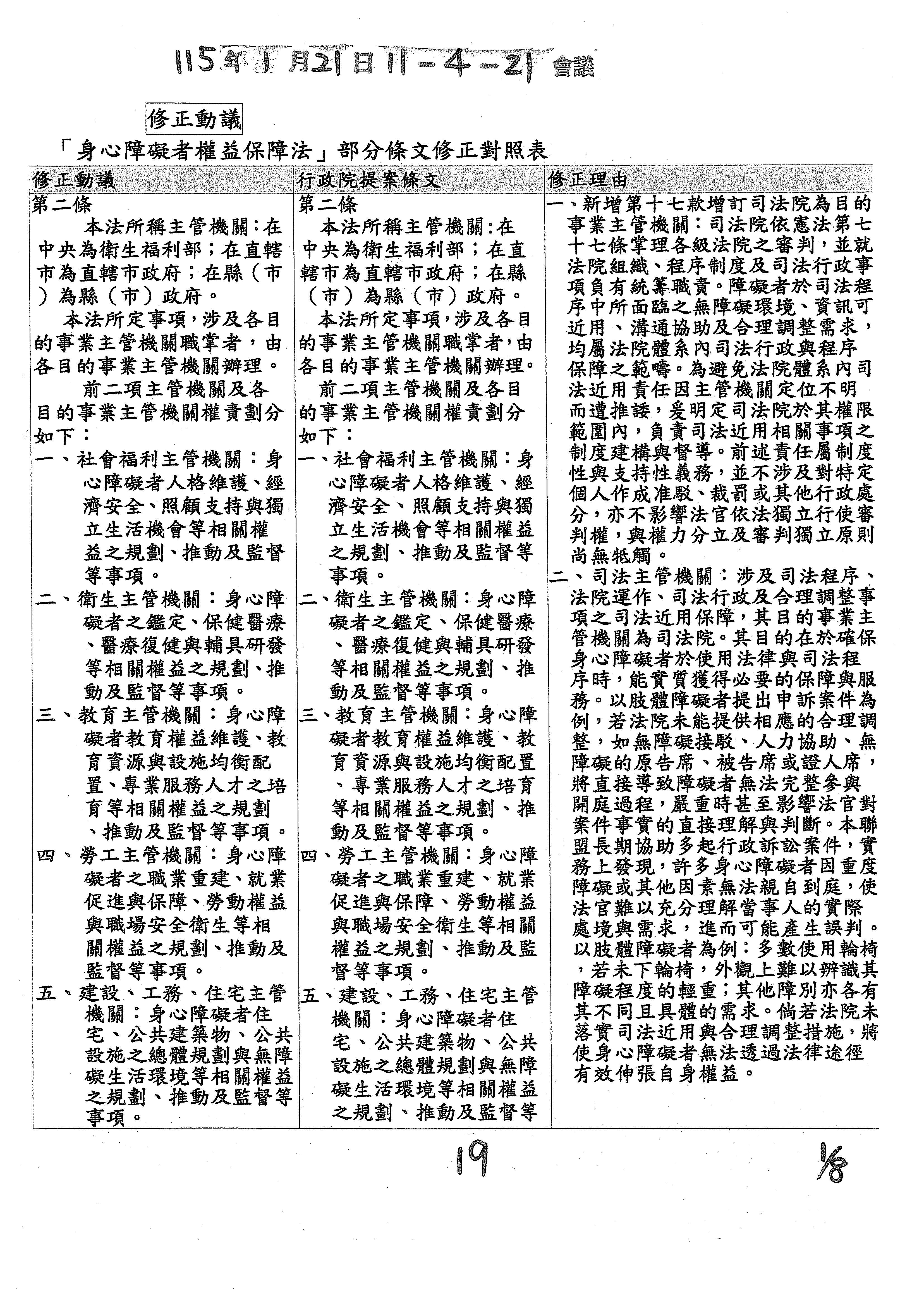 (十九)委員羅美玲等16人擬具「身心障礙者權益保障法部分條文修正草案」案。
