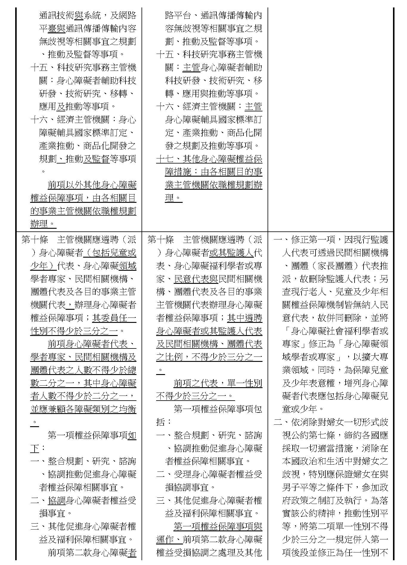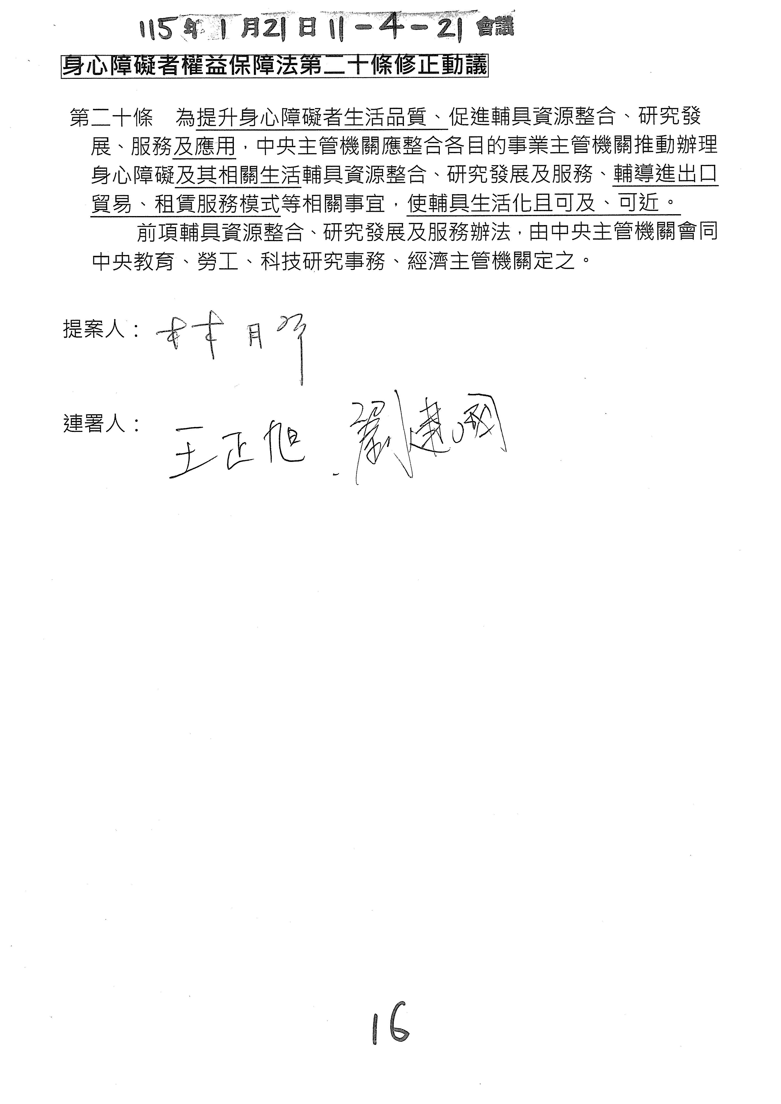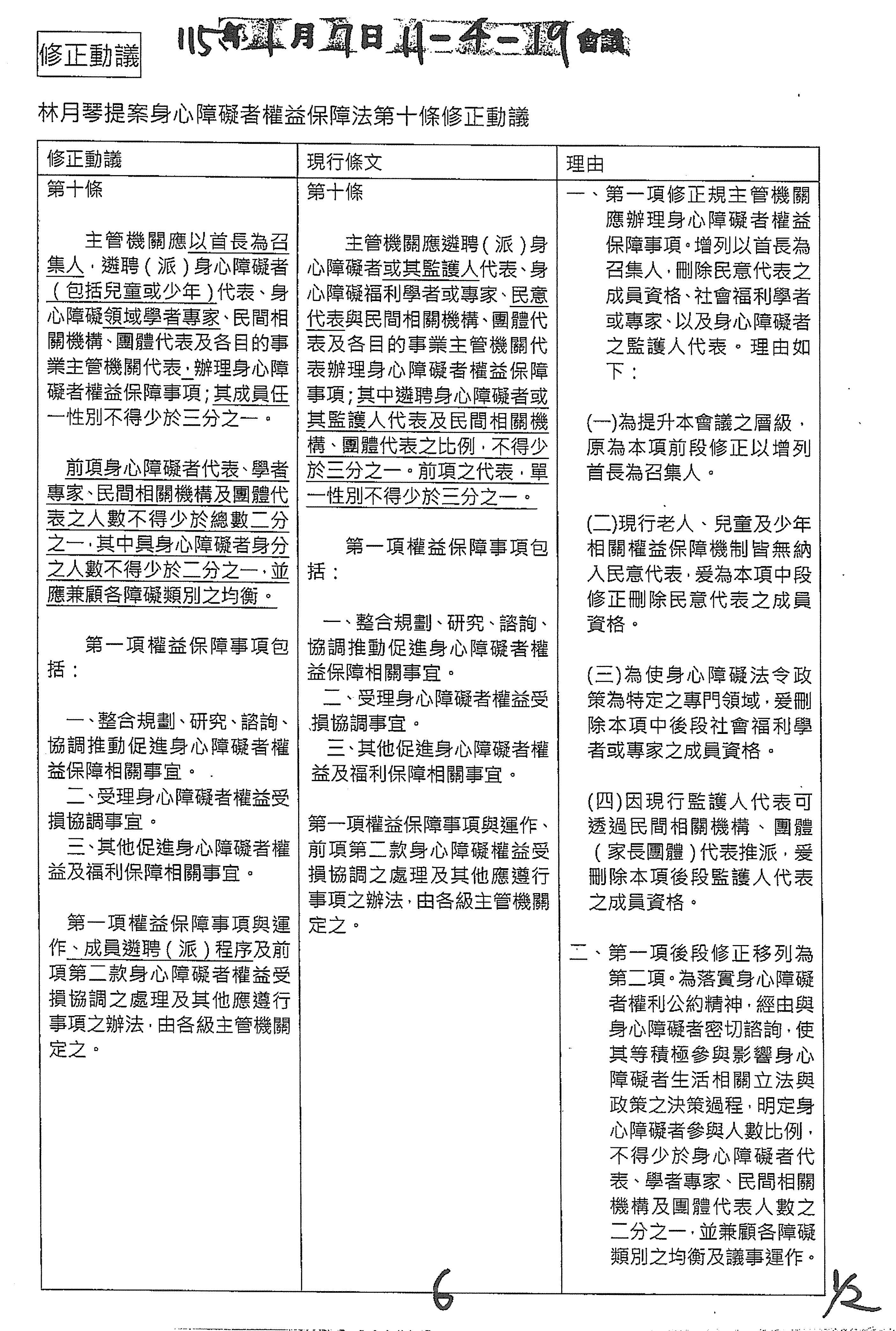 (十六)委員林楚茵等20人擬具「身心障礙者權益保障法第十條條文修正草案」案。
