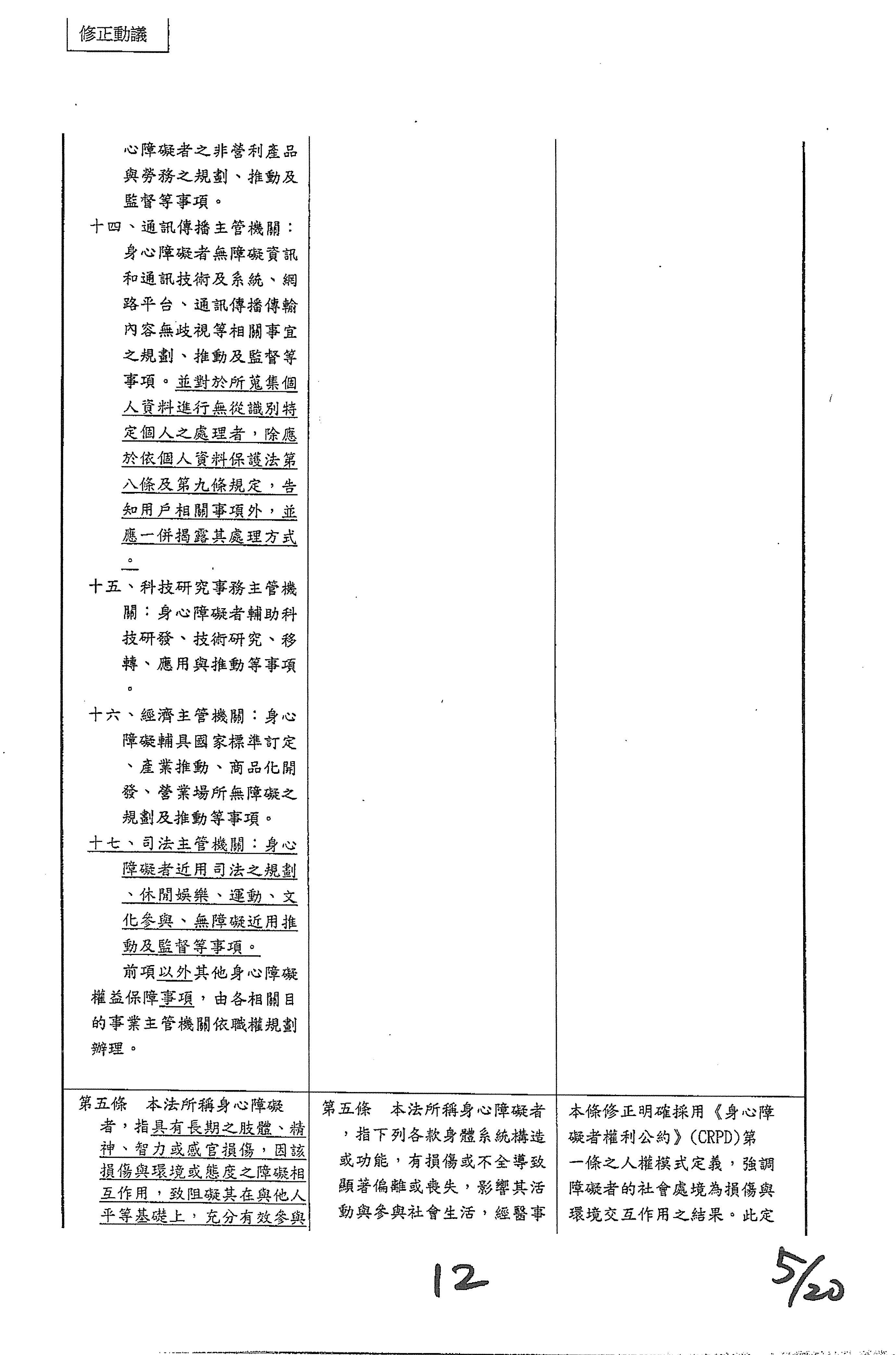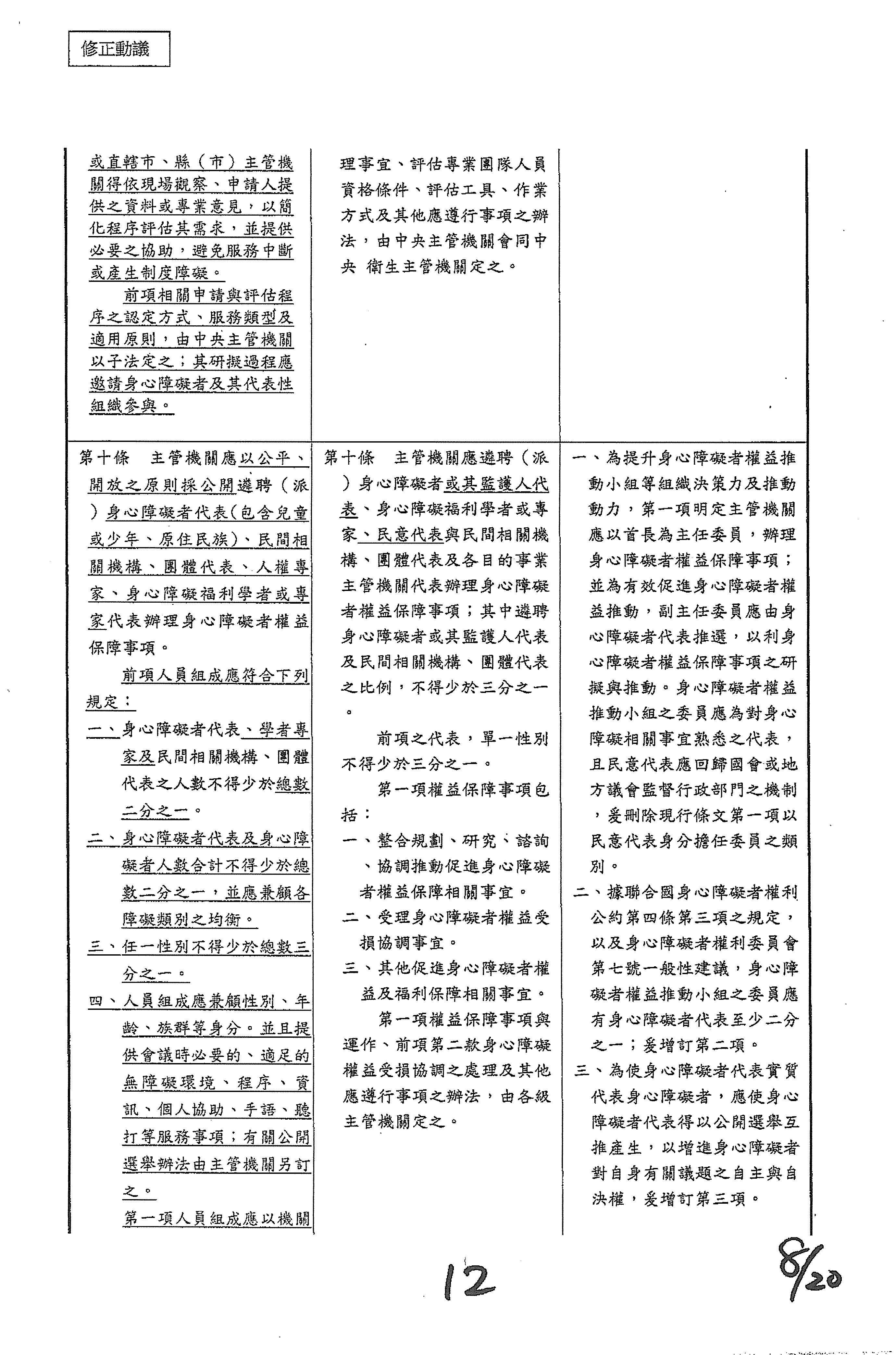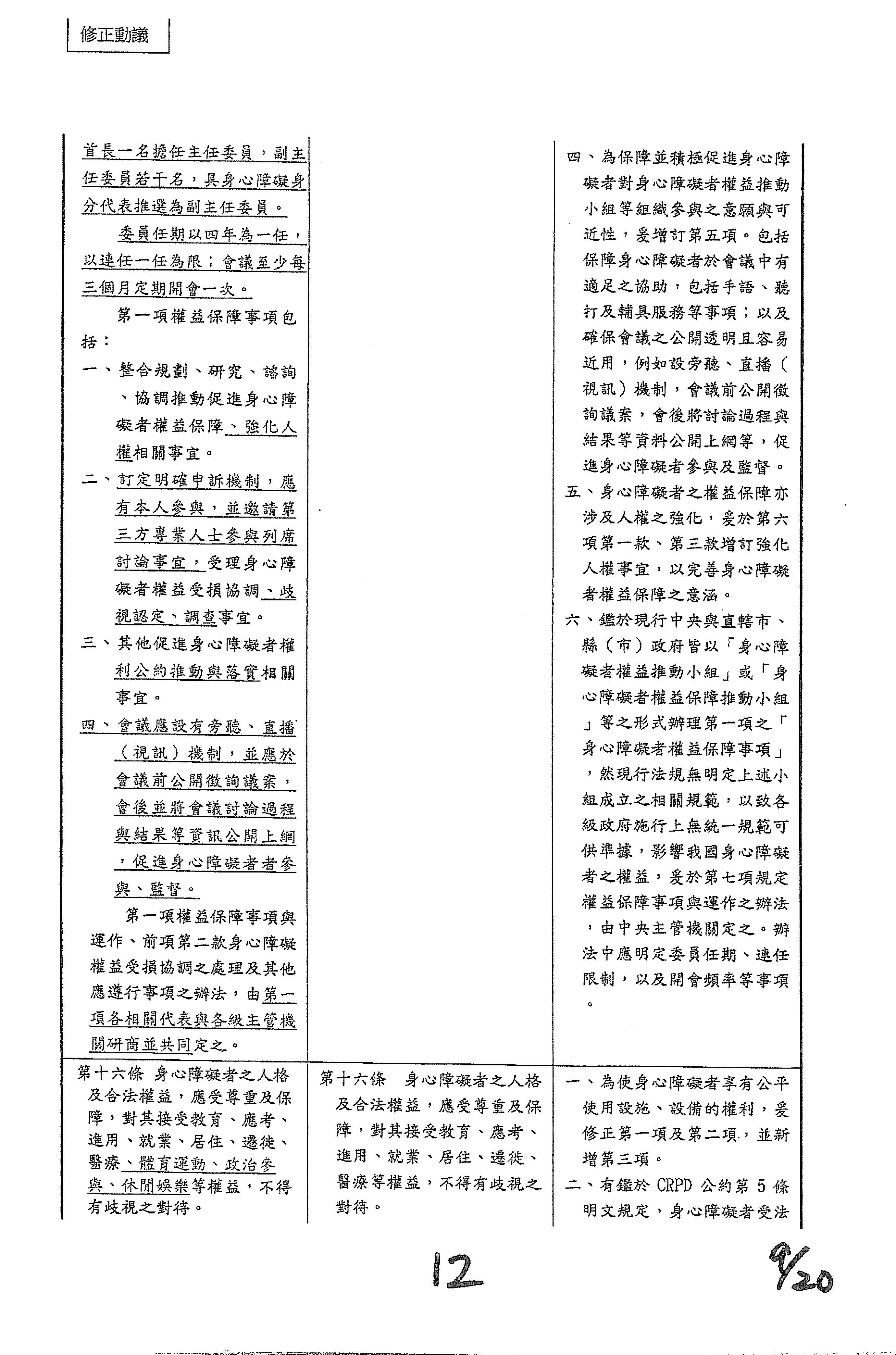 (十六)委員林楚茵等20人擬具「身心障礙者權益保障法第十條條文修正草案」案。
