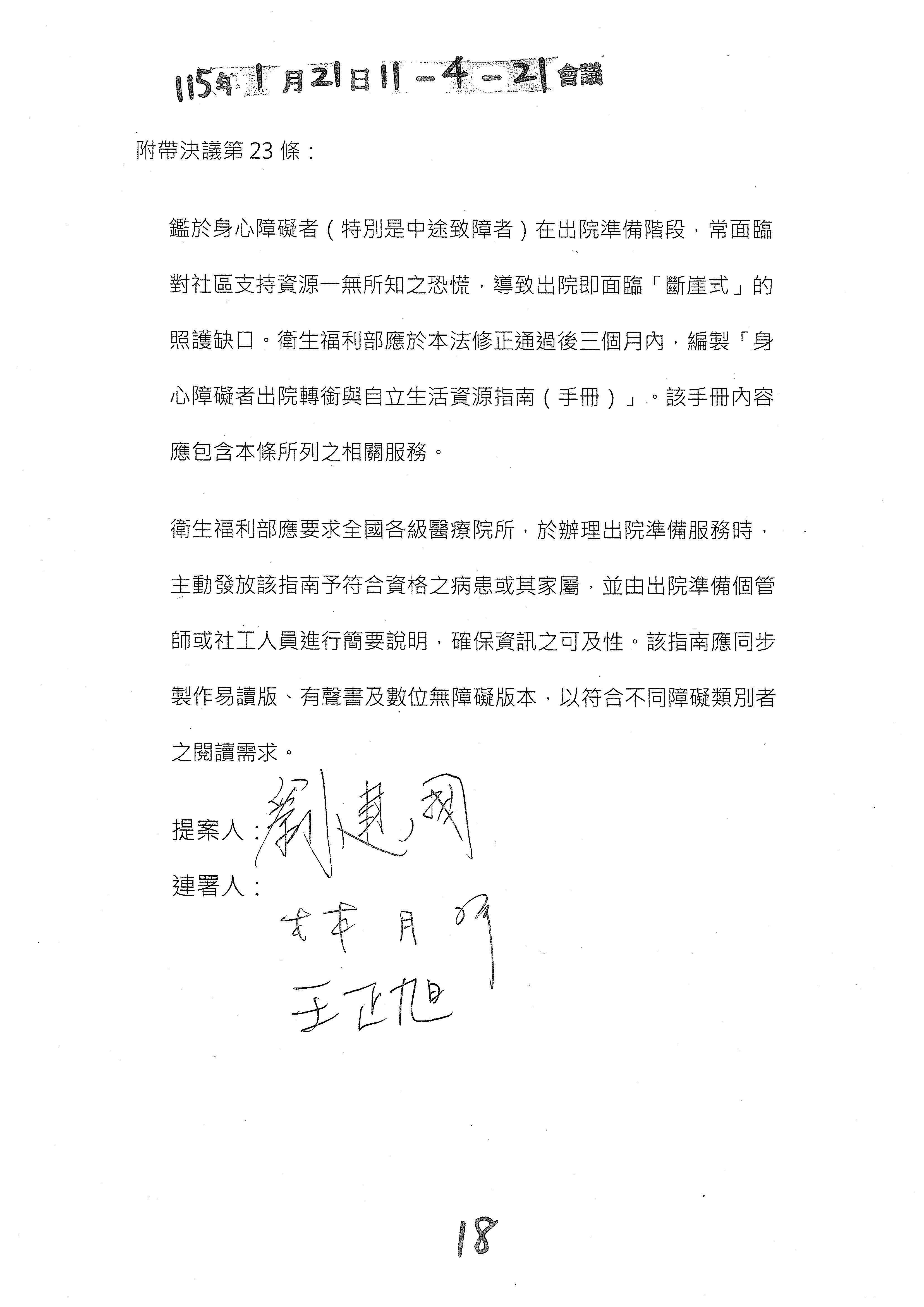 (二十三)委員邱若華等17人擬具「身心障礙者權益保障法第七十一條條文修正草案」案。