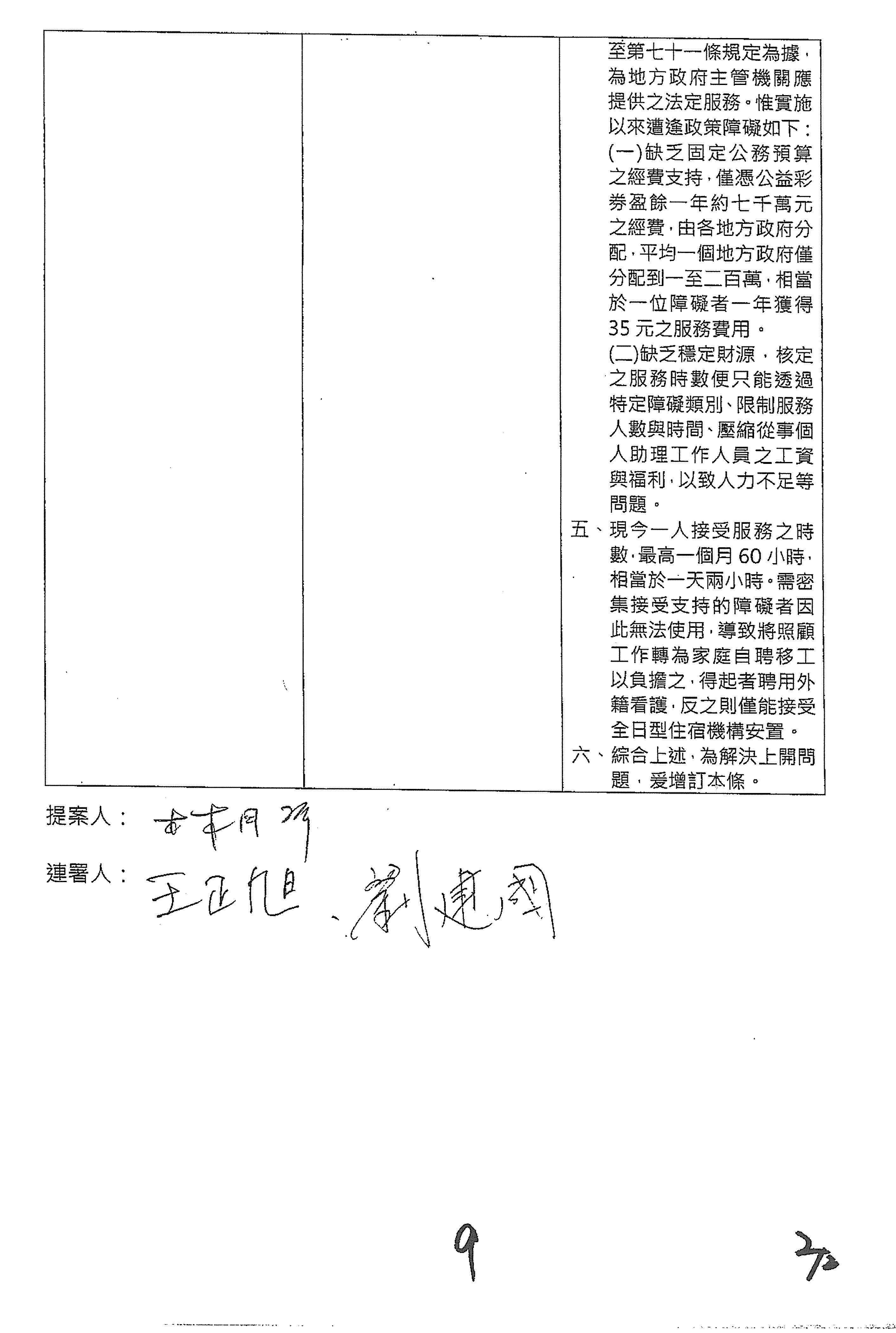(九)委員黃捷等17人擬具「身心障礙者權益保障法第七十一條條文修正草案」案。