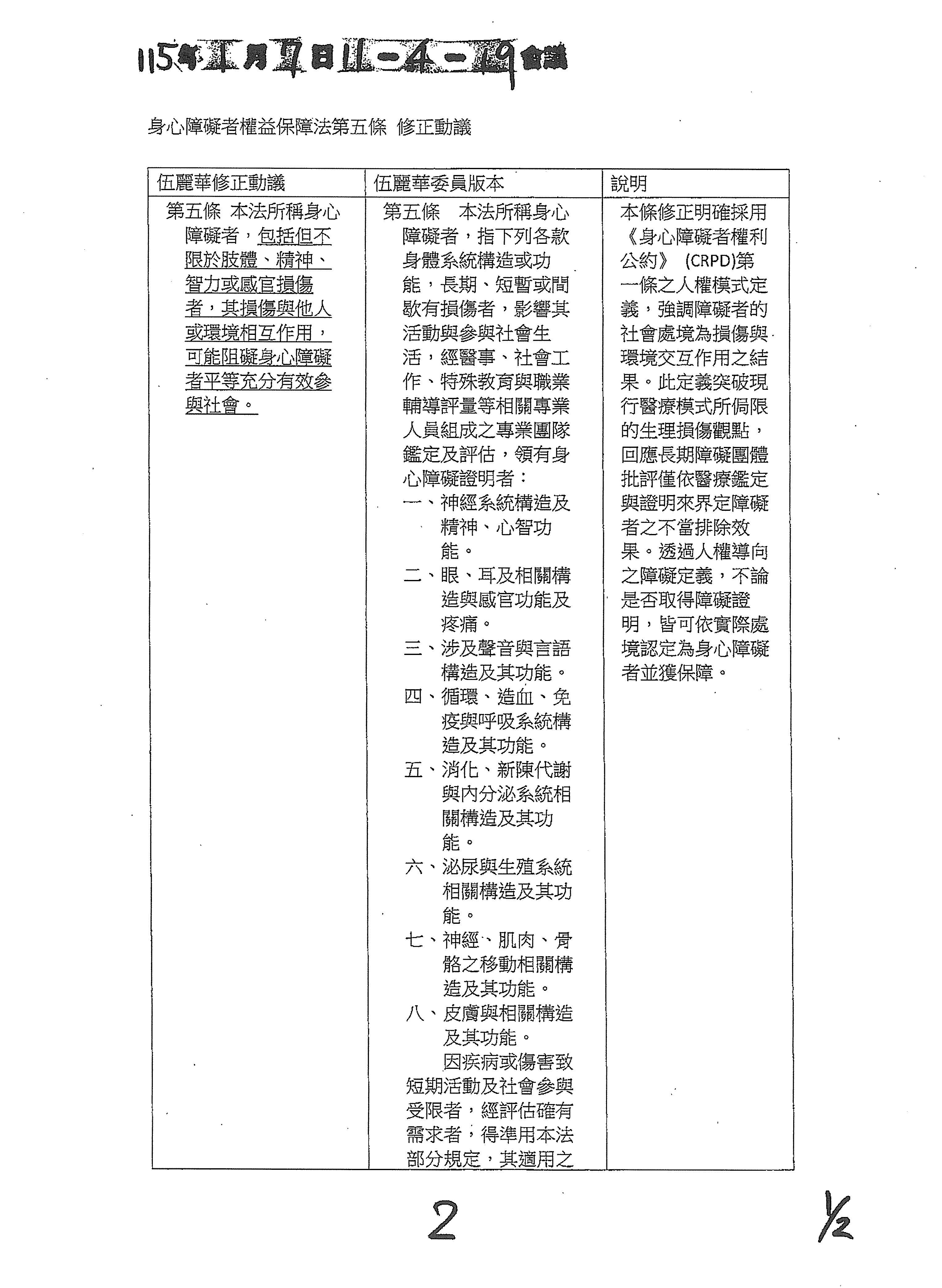 (二十六)委員伍麗華Saidhai Tahovecahe等18人擬具「身心障礙者權益保障法部分條文修正草案」案。