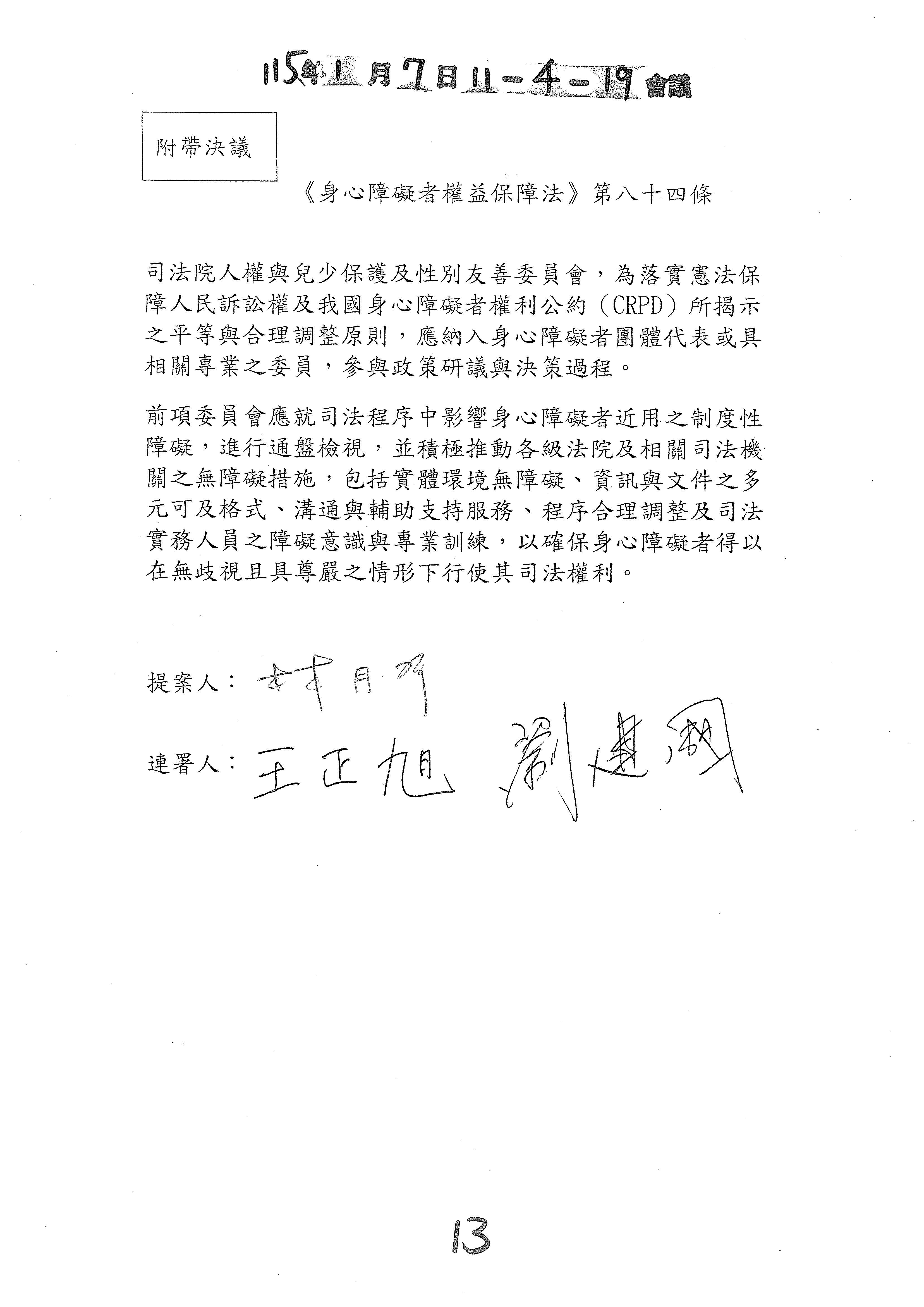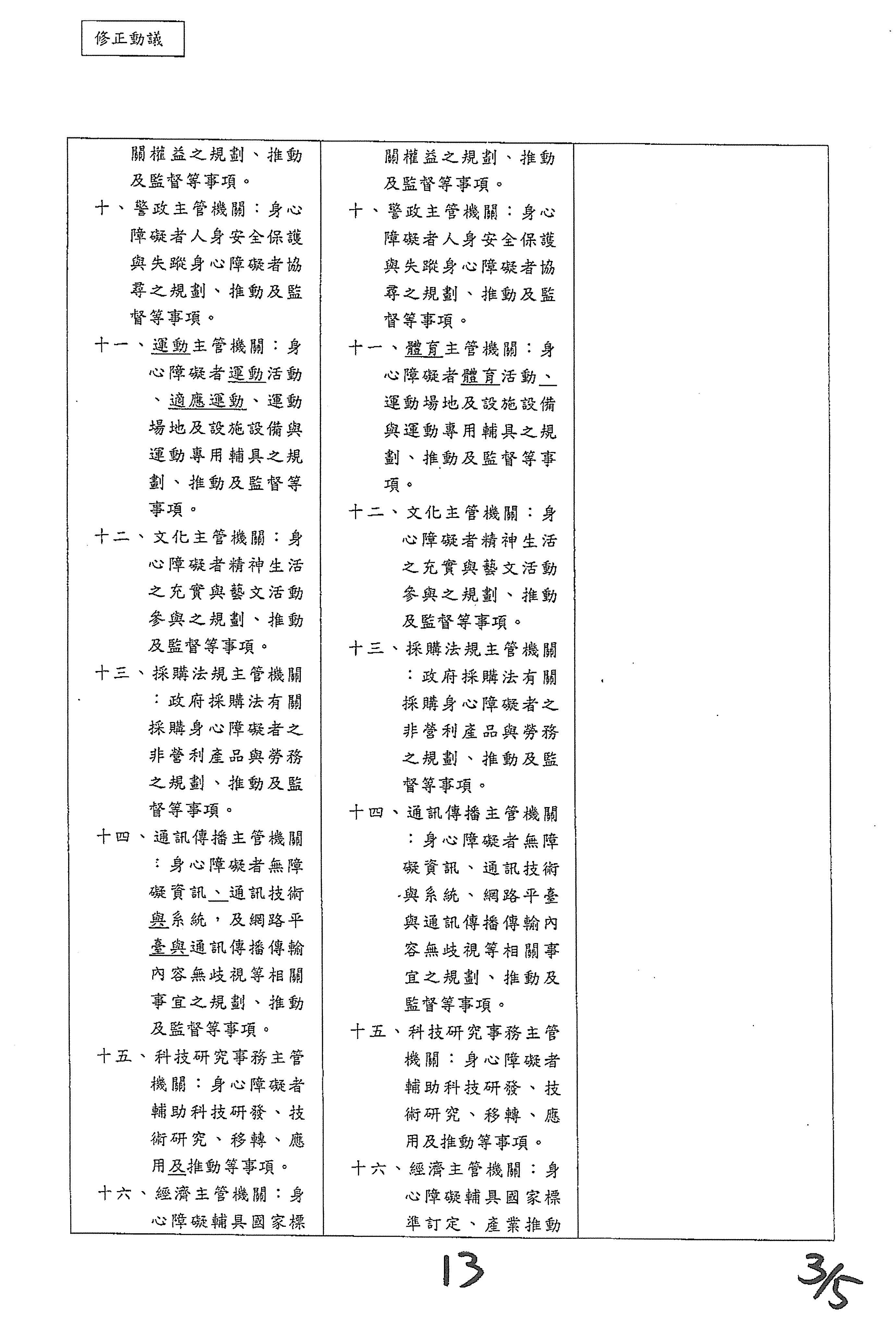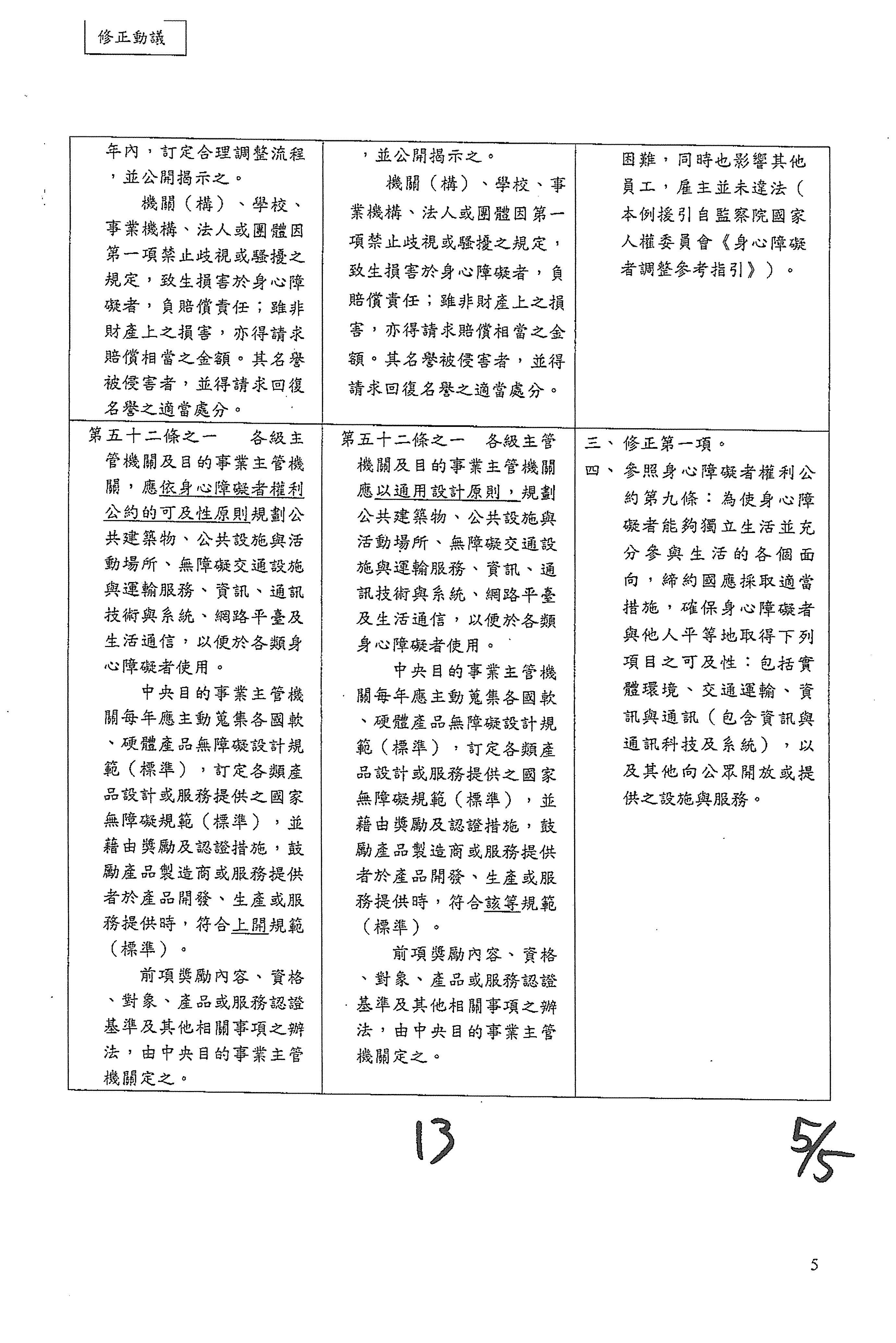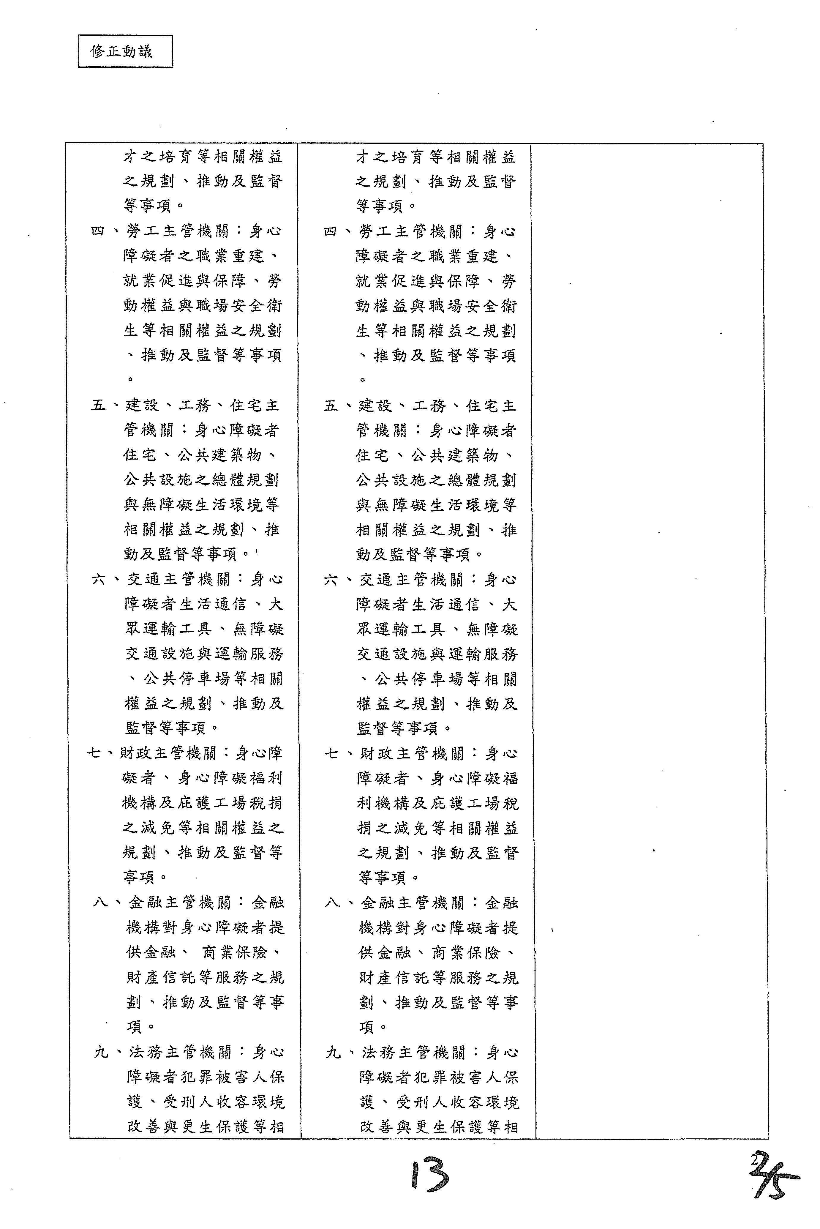 (十三)委員馬文君等19人擬具「身心障礙者權益保障法第三十條之一、第五十條及第五十二條條文修正草案」案。