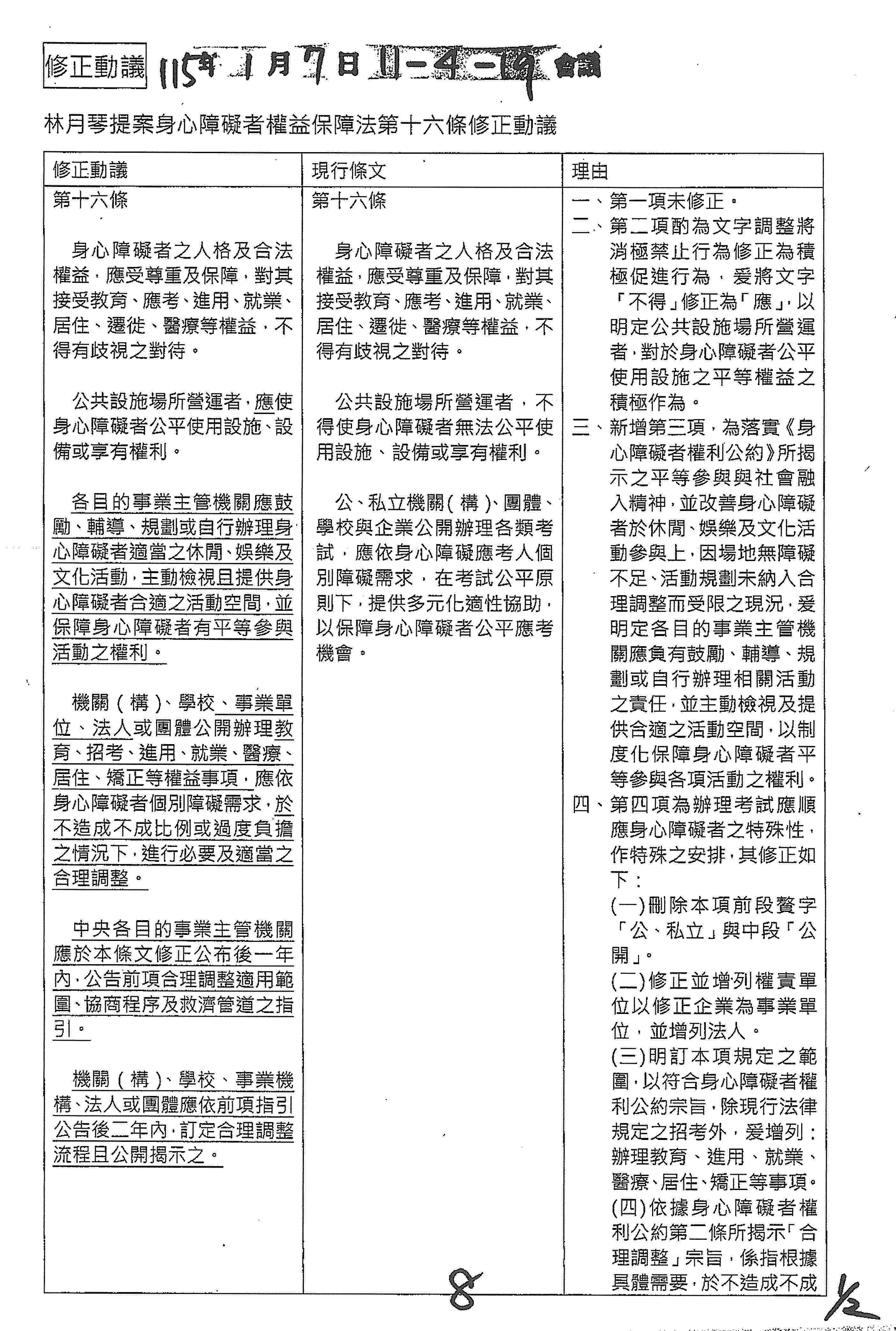 (八)委員羅廷瑋等16人擬具「身心障礙者權益保障法部分條文修正草案」案。