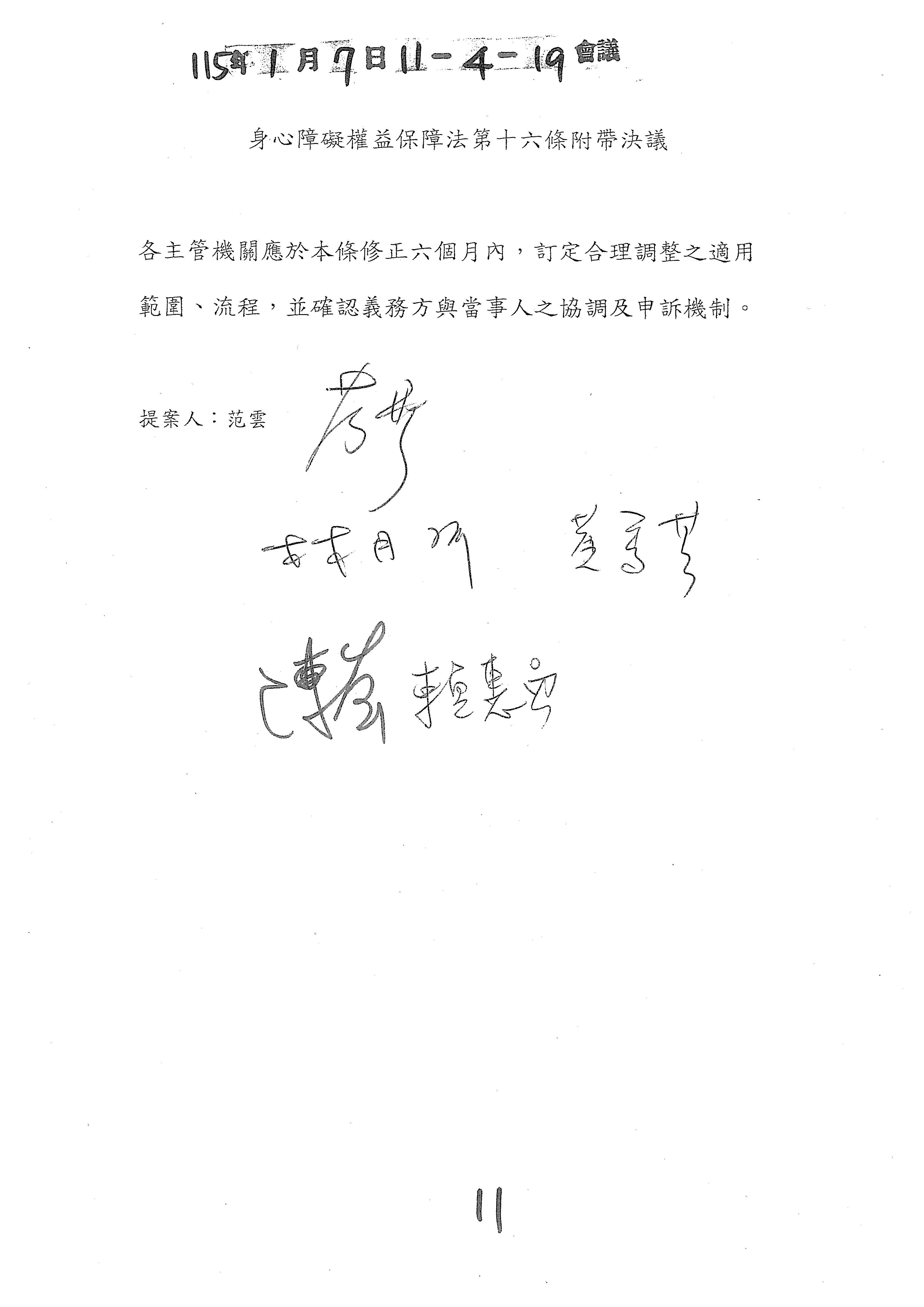 (十一)委員柯志恩等18人擬具「身心障礙者權益保障法增訂第四十條之一條文草案」案。