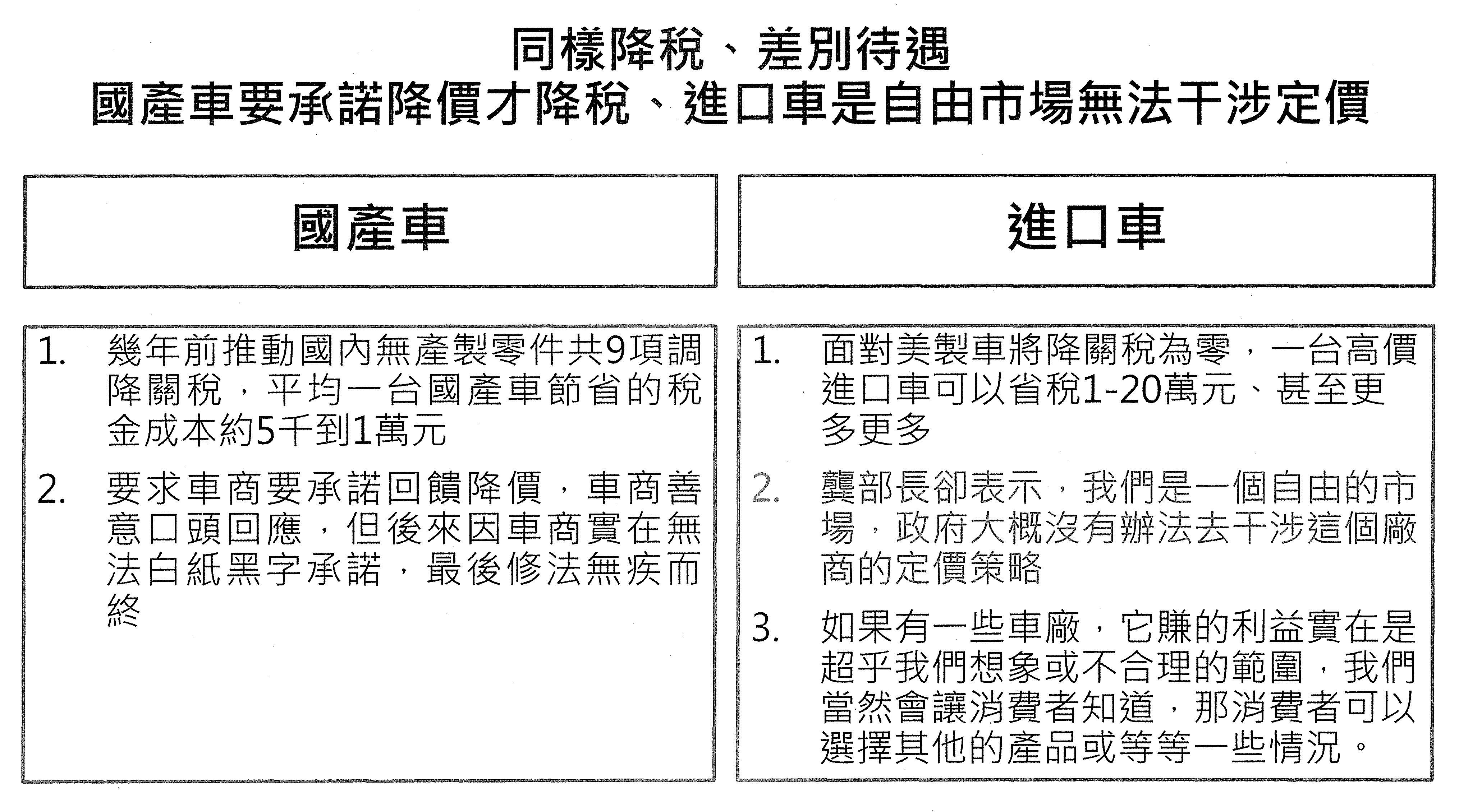 龔部長明鑫:報告委員,因為今年的暫時性關稅是10%加MFN,比起去年是20%加MFN,事實上也算是改善。